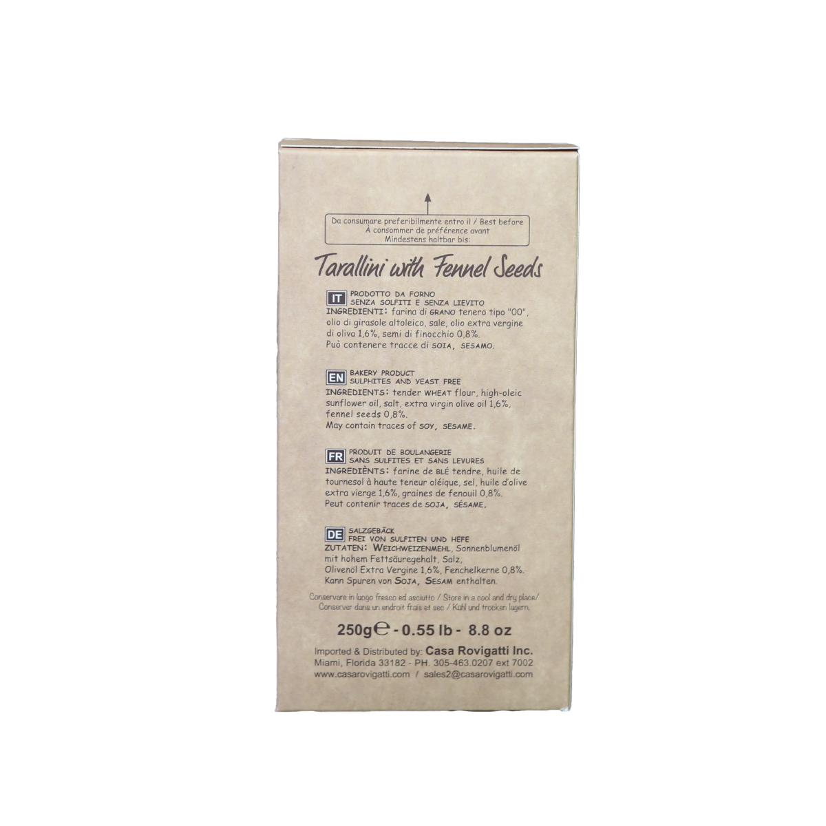 Ingredientes: Harina de trigo tierno*, aceite de girasol alto oleico, sal, aceite de oliva virgen extra, semillas de hinojo 1%.