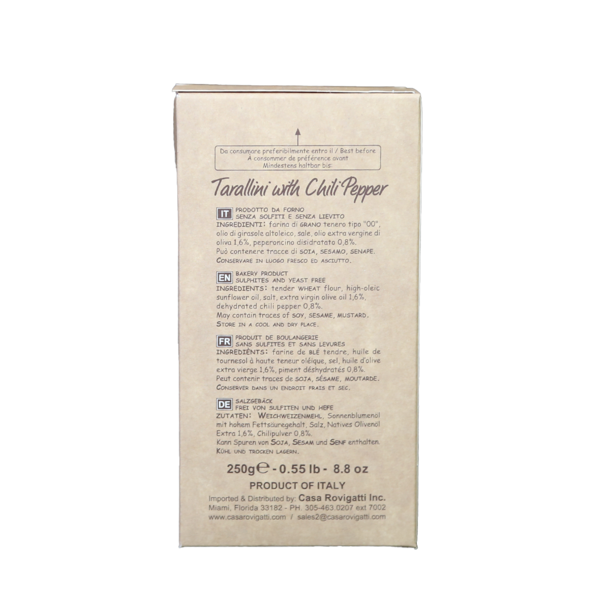 Ingredientes: Harina de trigo tierno*, Aceite de girasol alto oleico, sal, aceite de oliva virgen extra, chile deshidratado 1%.
