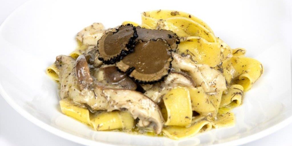 In abundant salted water, cook the PAPPARDELLE DI CAMPOFILONE “Casa Rovigatti” for 4 minutes, drain the pasta in the pan, add a few tablespoons of “Giuliani Tartufi” truffle sauce, the parmesan cream and chopped parsley, then serve.